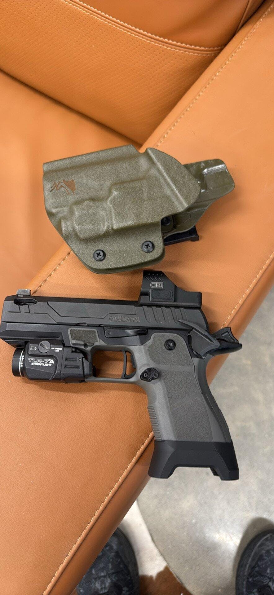 We cut all holsters for optics and they accommodate suppressor height sights. Also Features Open Bottom to allow for threaded barrels. This does not guarantee fitment for comps. There is no extra charge or need to request.